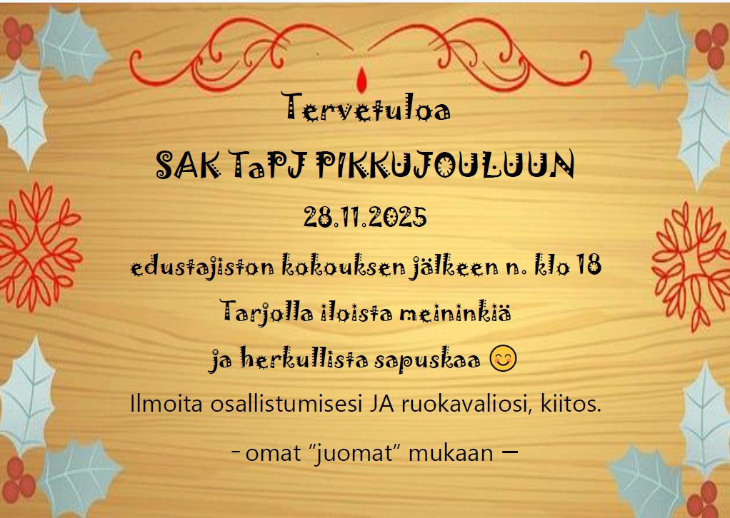 Lämpimästi tervetuloa TaPJ:n edustajiston syyskokoukseen pe 28.11.2025 klo 17.00